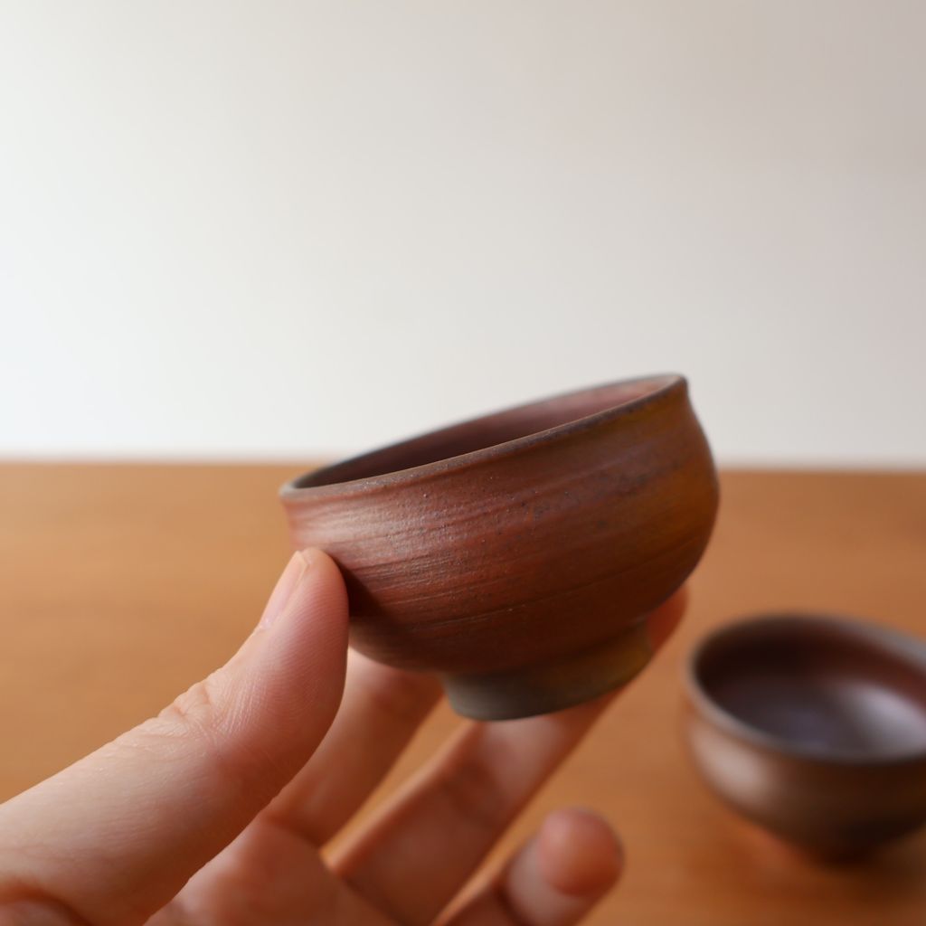 手捏的杯身渾圓飽滿,細細磨過的表面,滑順中帶著陶土的微妙觸感。