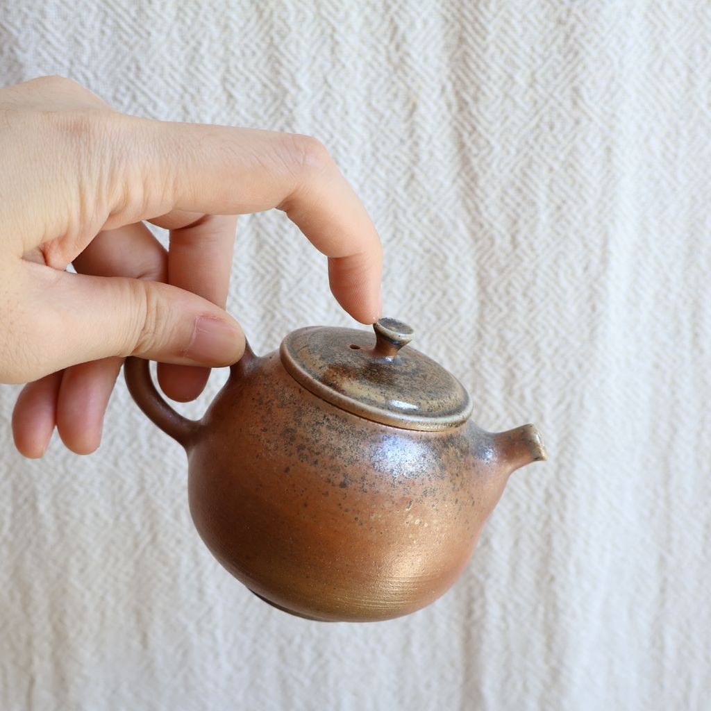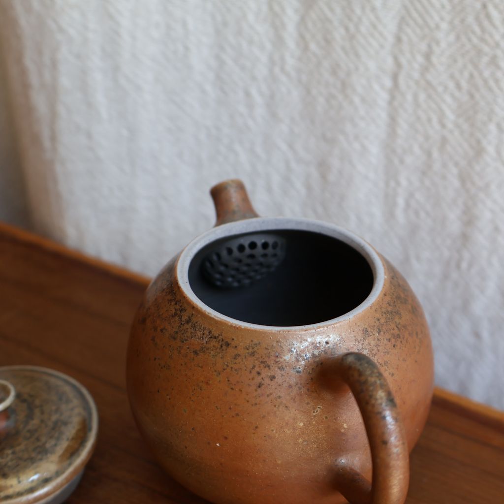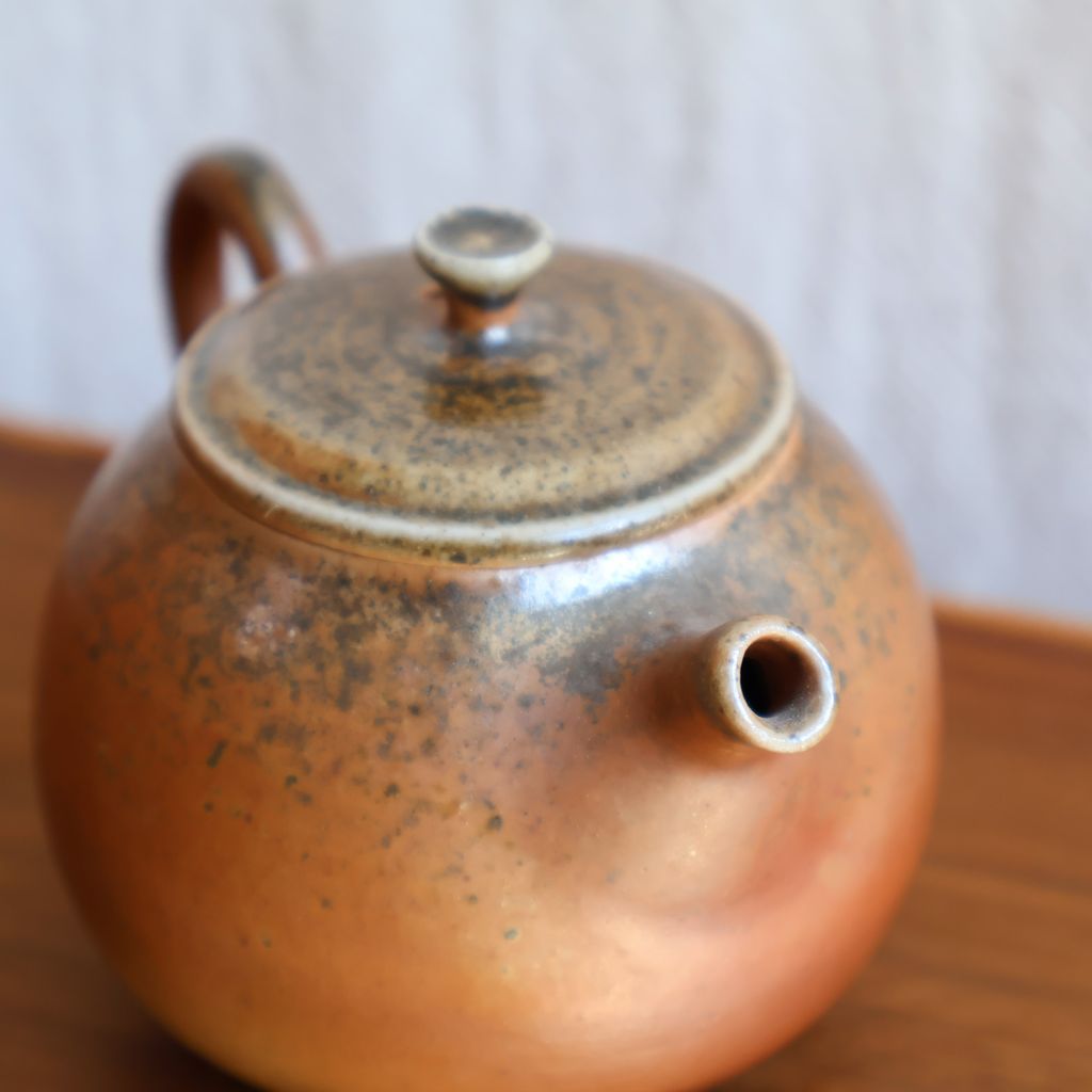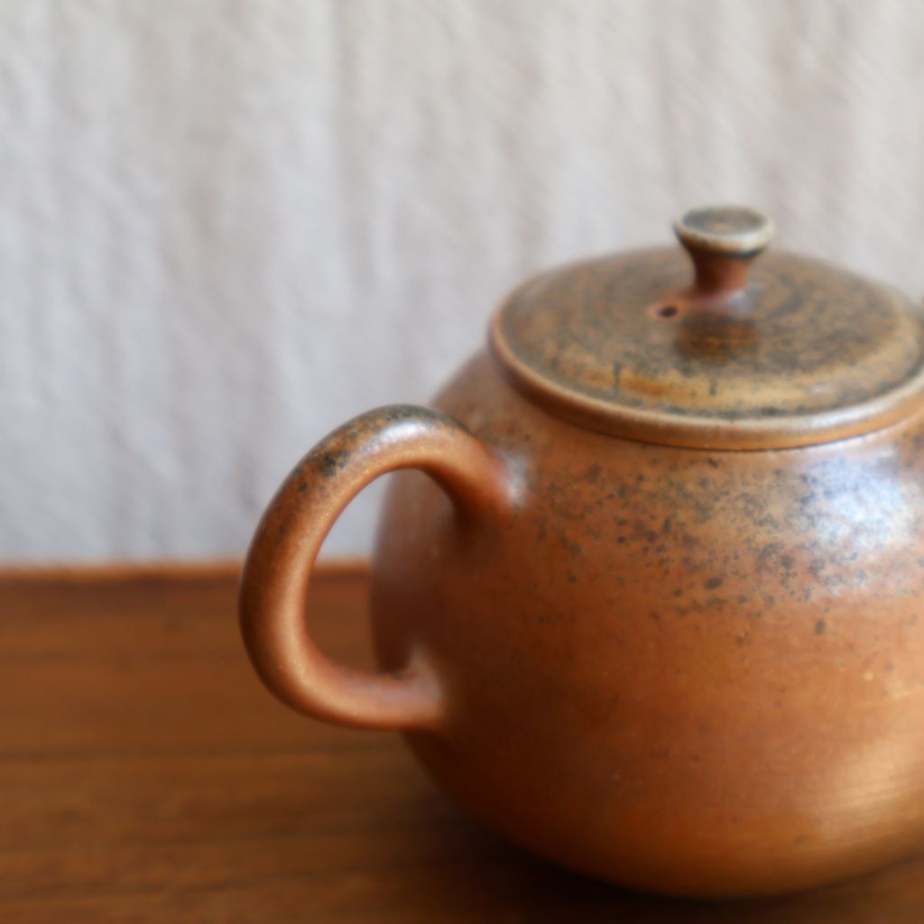 溫潤的紅褐色落灰,安靜地覆在壺身上,像日落時分暈染天邊的顏色,內斂卻富有層次。